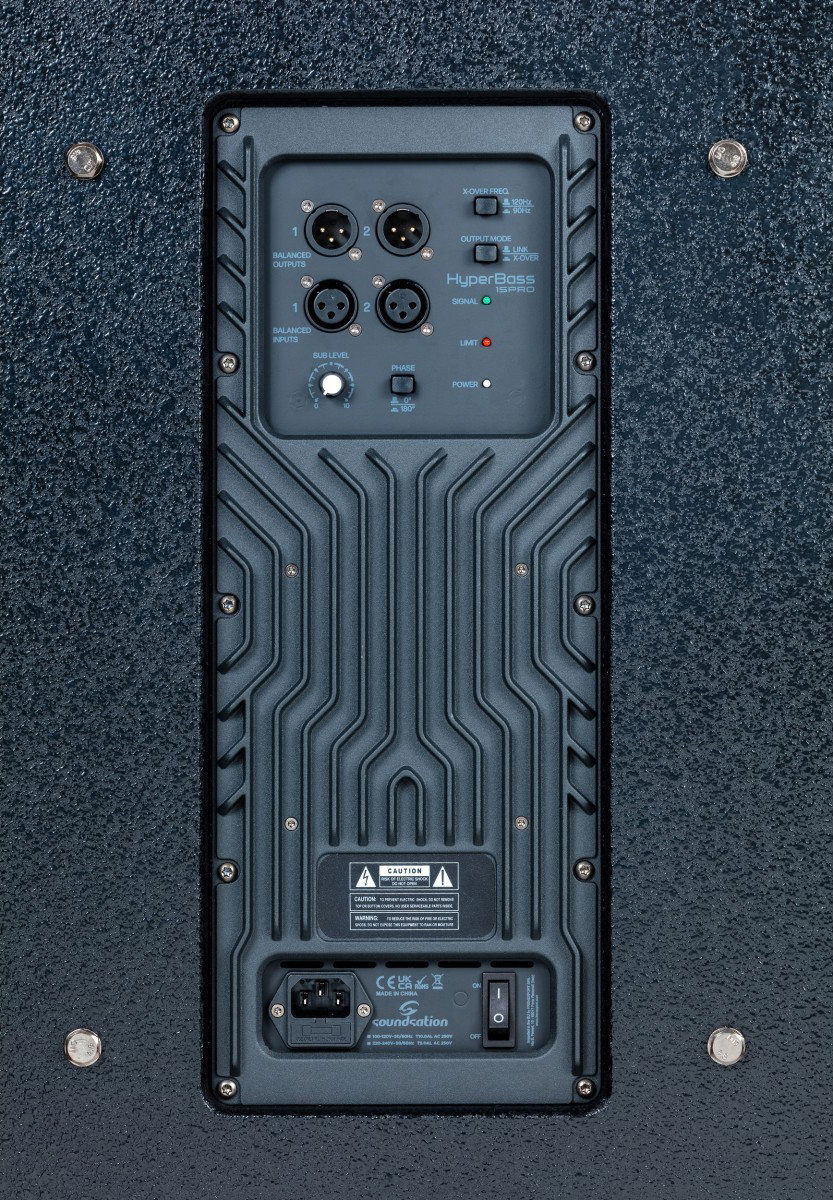 Soundsation HYPER BASS 15 PRO je výkonný aktivní subwoofer s 15" reproduktorem, který je navržen pro profesionální ozvučení koncertů, klubů, DJ setů i velkých eventů. Díky výkonu až 1200 W RMS / 3600 W peak poskytuje hluboké, pevné a dynamické basy, které dokonale doplní jakýkoliv full-range PA systém. Srdcem subwooferu je Class-D zesilovač, který zajišťuje vysoký výkon při zachování nízkého zkreslení i při vysoké hlasitosti. Frekvenční rozsah 35 Hz – 150 Hz a maximální akustický tlak až 127 dB SPL garantují silnou a přesnou basovou odezvu vhodnou pro náročné aplikace. Integrovaný DSP procesor nabízí pokročilé možnosti nastavení včetně výhybky (90 Hz / 120 Hz) a přepínání fáze (0° / 180°) pro optimální sladění s ostatními reproboxy. Konektivita zahrnuje symetrické XLR vstupy a výstupy, přičemž výstupy lze nastavit jako Link nebo X-Over podle potřeby systému. DSP zároveň zajišťuje komplexní ochranu proti přehřátí, přebuzení i signálovým špičkám, což výrazně zvyšuje spolehlivost při dlouhodobém provozu. Konstrukce je vyrobena z odolné 18mm překližky a chráněna pevnou ocelovou mřížkou, což zaručuje vysokou odolnost při transportu i náročném nasazení. Praktické jsou také čtyři zapuštěné rukojeti pro snadnou manipulaci a M20/36mm příruba pro montáž satelitních reproboxů. Na zadní straně se nachází závity pro kolečka (volitelné příslušenství), které usnadňují přepravu. Soundsation tak s modelem HYPER BASS 15 PRO nabízí spolehlivý a výkonný PA subwoofer, který splní požadavky moderních zvukařů na sílu, přesnost i odolnost v profesionálním provozu.