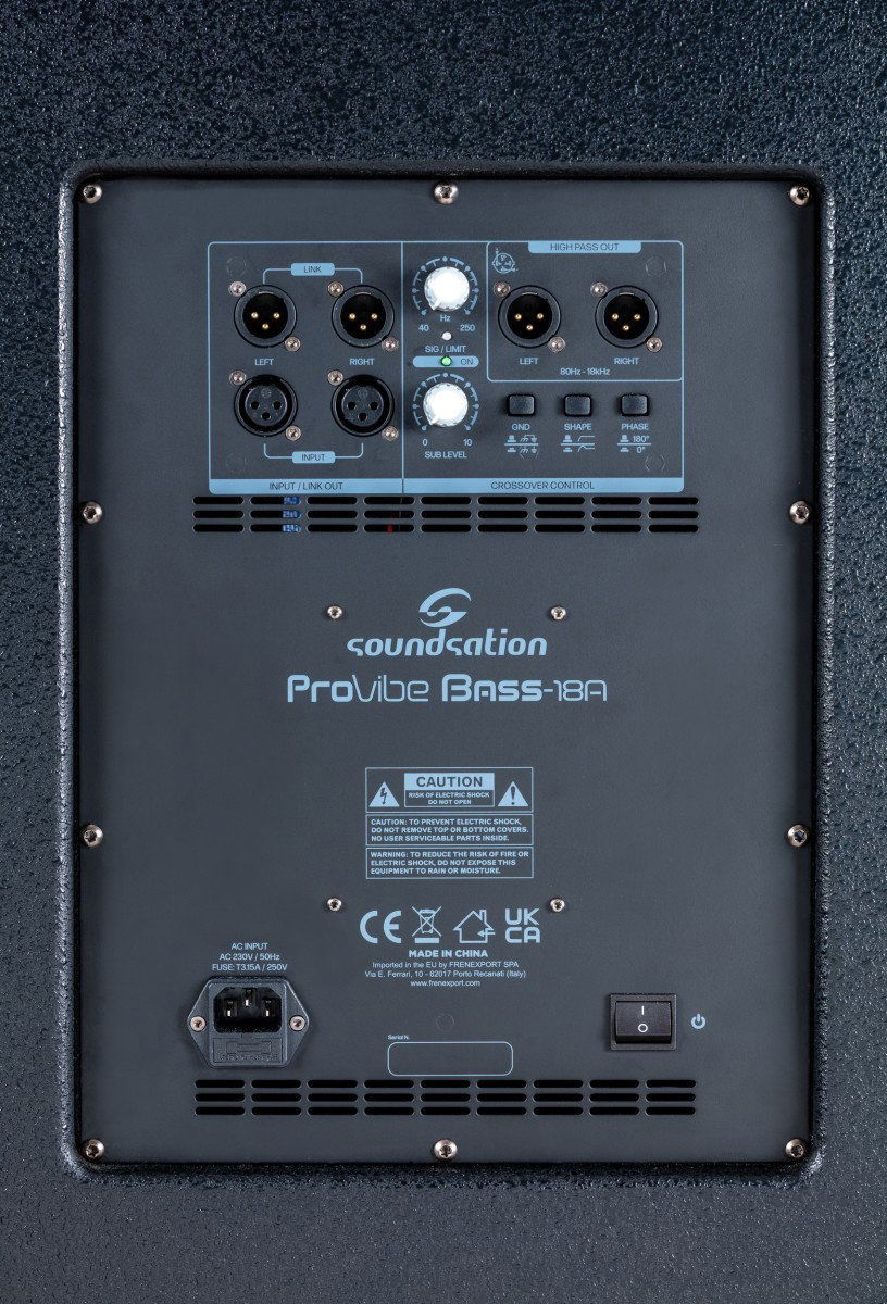 Soundsation PROVIBE BASS 18A je výkonný aktivní subwoofer s 18" reproduktorem, který je navržen pro náročné ozvučení koncertů, DJ produkcí i velkých prostor, kde je potřeba maximální tlak v nízkých frekvencích. Díky výkonu až 1800 W peak poskytuje hluboký, razantní a pevný bas, který dodá vašemu zvuku potřebnou energii a dynamiku. Subwoofer je vybaven moderním Class-D zesilovačem s DSP, který zajišťuje efektivní výkon a čistou reprodukci i při vysoké hlasitosti. Integrovaná stereo výhybka nabízí přesné nastavení s nastavitelnou frekvencí HPF v rozsahu 40–250 Hz, což umožňuje optimální sladění s hlavními reproboxy. Ovládací panel dále nabízí nastavení úrovně subwooferu, přepínač fáze (0°/180°), volbu charakteru filtru a GND lift pro eliminaci brumu. Konektivita zahrnuje symetrické XLR vstupy, výstupy s high-pass filtrem a linkové výstupy (full-range), což umožňuje flexibilní zapojení do různých PA systémů. Subwoofer je tak ideální nejen jako doplněk k řadě ProVibe, ale i pro univerzální použití v jakémkoliv ozvučovacím setupu. Pro maximální spolehlivost je zařízení vybaveno ochranami RMS, overload a thermal protection, které chrání elektroniku i reproduktor při náročném provozu. Díky své konstrukci a výkonu je PROVIBE BASS 18A ideální volbou pro venkovní akce, kluby i velké sály, kde je potřeba silný a stabilní basový základ. Značka Soundsation nabízí dostupná a funkční řešení pro moderní ozvučení, a model PROVIBE BASS 18A je spolehlivý PA subwoofer, který kombinuje vysoký výkon, flexibilní nastavení a profesionální využití.