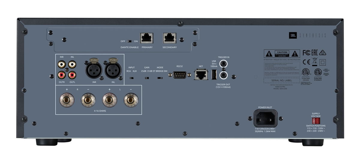 SDA-2200 nabízí podporu pro digitální audio síť DANTE se dvěma ethernetovými porty. DANTE je inovativní funkce, která posílá nekomprimovaný zvuk i video přes Ethernet do kompatibilních systémových komponent a dokáže nahradit množství audio připojení pomocí ethernetových kabelů a počítačové sítě. DANTE tak umí překlenout propast mezi domácími a komerčními aplikacemi. Zpracovaný zvuk lze směrovat po jediném kabelu CAT5e nebo CAT6 přes standardní IP síť. DANTE lze snadno nastavit a je kompatibilní se zesilovači JBL Synthesis podporujícími DANTE.